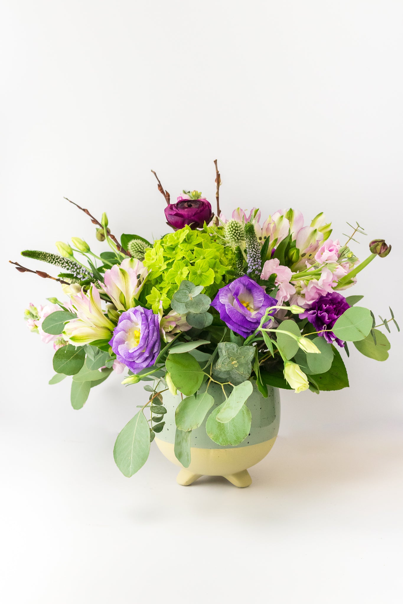 This lovely spring arrangement will bring a smile to anyone who receives it. With hydrangeas, carnations and adorable thistles, it's like bringing your garden into your home.